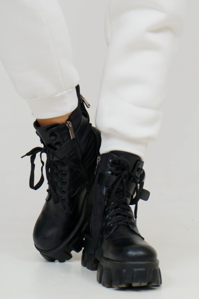 Костюм состоит из объёмной толстовки с капюшоном на запах и брюк с боковыми карманами. На полочке толстовки есть модный и удобный накладной карман. Манжеты рукавов и брюк выполнены из качественного кашкорсе. Линия плеча спущена. Длина рукава указана от точки основания шеи. Пояс брюк выполнен на специализированной поясной машине.